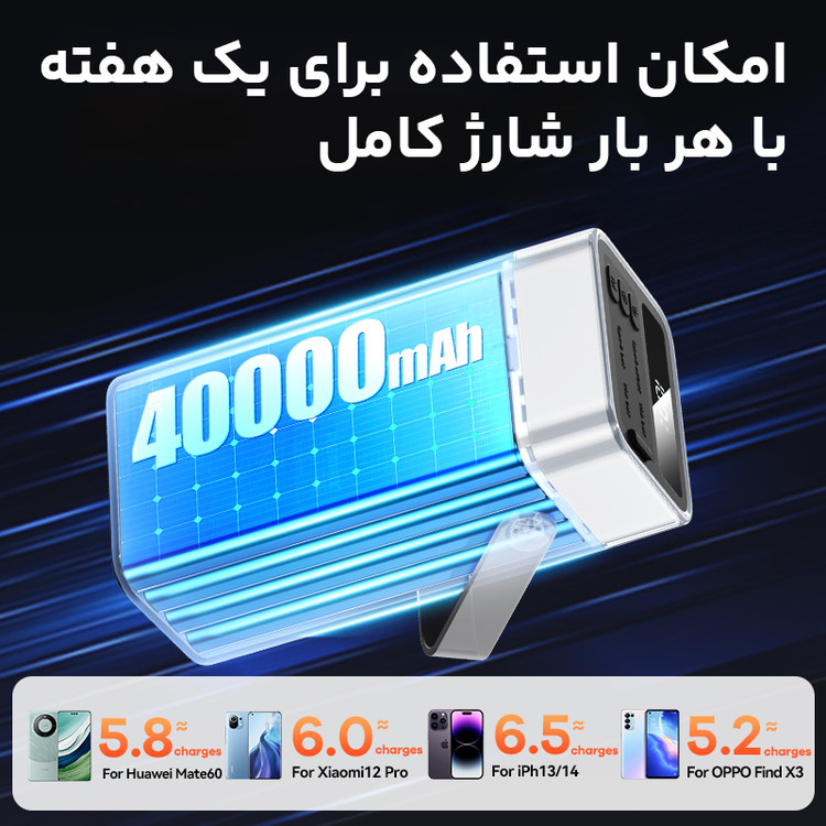 ظرفیت بسیار بالا, شارژ سریع, چند پورت خروجی: نمایشگر LED, طراحی مقاوم, باتری لیتیوم پلیمری