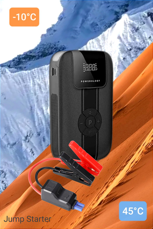 یک جامپ استارتر قابل حمل با کمپرسور هوا می تواند به شما کمک کند در سریع ترین زمان ممکن به جاده بازگردید و به مسیر خود ادامه دهید. کافی است جامپ استارتر را به باتری مرده ماشین خود وصل کنید و موتور خود را روشن کنید کار تمام است. علاوه بر این استارتر قابل حمل است و به اندازه کافی کوچک Powerology است که در داشبورد یا صندوق عقب قرار گیرد و به شما امکان میدهد ماشین خود را در هر کجا و در هر زمان روشن کنید. پس از راه اندازی موفقیت آمیز دوشاخه گیره سیم را از محصول بکشید و گیره را از پایانه های مثبت و منفی باتری خودرو جدا کنید توجه داشته باشید که وقتی اقدام به استارت ماشین میکنید مطمئن شوید که قدرت باطری بالای 50% باشد.