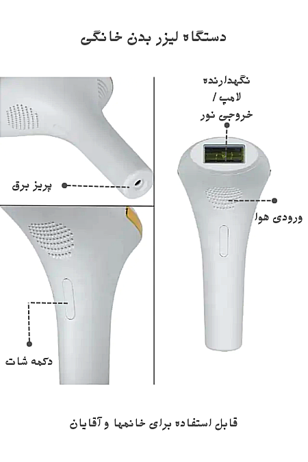 قبل از استفاده از محصول ناحیه مورد نظر را کاملا اصلاح ( شیو ) و خشک کنید برای تاثیر حداکثری ترجیحا بعد از حمام از محصول استفاده نمایید - 1_ بعد از اتصال آداپتور به برق شهری دکمه power لمسی روی پنل را به مدت 2 ثانيه فشار دهید تا دستگاه روشن میشود 2_ سطح رنگ پوستتان را بر اساس رنگبندی پوست موجود در صفحه 10 دفترچه راهنما انتخاب کنید 3_ دقت کنید که قسمت فلش لیزر کاملا به پوست بچسبد و بر پوست عمود باشد 4_ کلید پرتاب شات را فشار دهید تا شات لیزر انجام شود البته کمی احساس حرارت و لرزش در سطح پوست خواهید داشت که کاملا طبیعی است 5_ هر قسمت از پوست که لازم است را با همین روش لیزر کنید 6_ اگر یک ناحیه را دوبار میخواهید لیزر کنید یک فاصله 10 ثانیه ای بین هر شات مکث نمایید 7_ دقت کنید به طور مستقیم شات به چشم مژه و ابروها نزنید حتما از عینک محافظ استفاده کنید 8_در ماه اول هفته ای 2 الی 3 بار ، در دوم به بعد هفته ای یکبار و بعد از ماه چهارم در صورت نیاز از این دستگاه استفاده نمایید و با استفاده از این دستگاه رشد موهای زائد 2 الی 6 ماه به طور کامل از بین خواهد رفت در هنگام استفاده از عینک محافظ که داخل بسته بندی موجود میباشد استفاده کنید دو سری اضافه داخل بسته بندی وجود دارد که برای مود SR سری زرد رنگ ) جوانساز پوست و دیگری برای مود AC ) سری ( قرمز ) رفع آکنه استفاده میشود .