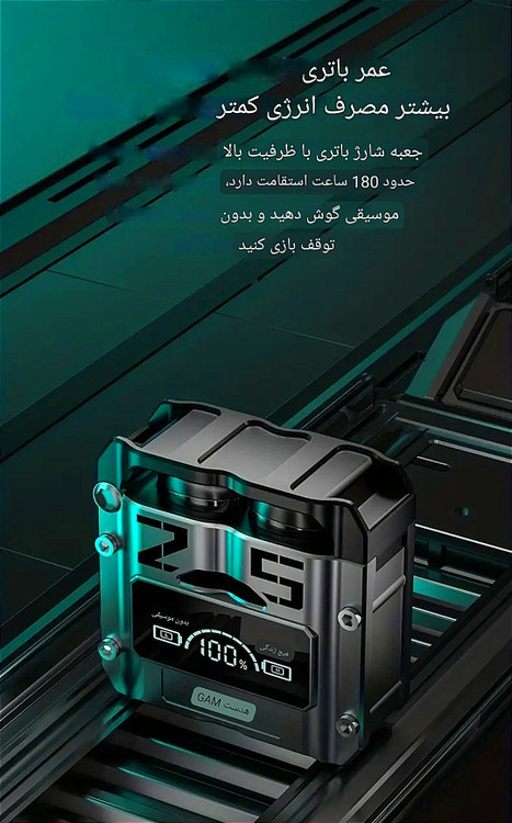 هندزفری بلوتوثی گیمینگ DEELIOR مدل M25 ENC یک ایرپاد مخصوص بازی و استفاده روزانه است که با طراحی اسپرت با افکتهای لامپ های 7 رنگ RGB ظاهر جذاب برای استفاده روزانه را به شما ارائه می نماید این مدل برای اتصال به دستگاه به بلوتوث نسخه 5. 3 مجهز شده است و در مدت زمان کوتاه ، اتصال با گوشی موبایل اندروید یا ios شما برقرار خواهد شد. عمر باتری ایرپاد در زمان مکالمه و پخش موزیک ، 4 الی 6 ساعت می باشد. از ویژگیهای اصلی این محصول محفظه نگهدارنده یا همان کیس آن است. این کیس قابلیت شارژ هدفون را دارد برای شارژ آن کافی است از درگاه USB-C تعبیه شده بر روی کیس و کابل شارژ درون بسته بندی استفاده کنید زمان مورد نیاز برای شارژ محفظه حدود 2 ساعت میباشد. همچنین این ایرپاد گیمینگ دارای یک میکروفون با کیفیت است و این ویژگی ، آن را برای مکالمه مناسب میسازد. از قابلیت های این محصول میتوان به ضد آب بودن ، فعال بودن Siry در آیفون ، HD Voice و ENC است. زیر این محصول یک پورت خروجی USB نیز قرار دارد که به وسیله آن میتوانید از باتری ایرپاد به عنوان پاور بانک اضطراری نیز استفاده کنید