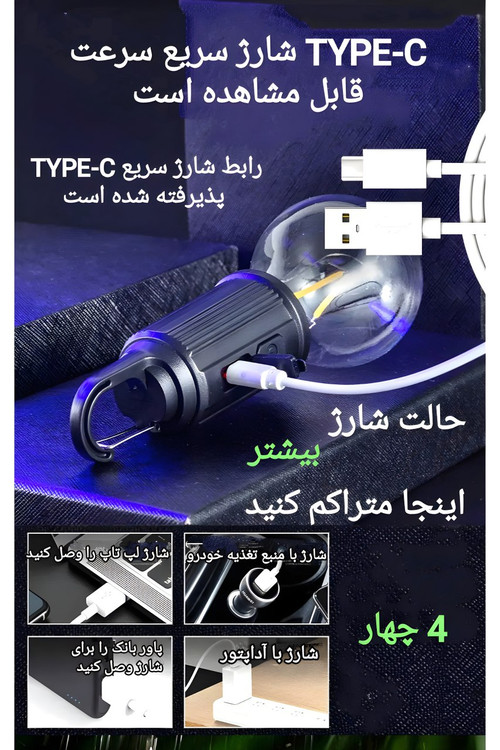 1. شارژ TYPE-Cهمه کاره این لامپ کمپینگ در فضای باز برای کمپینگ