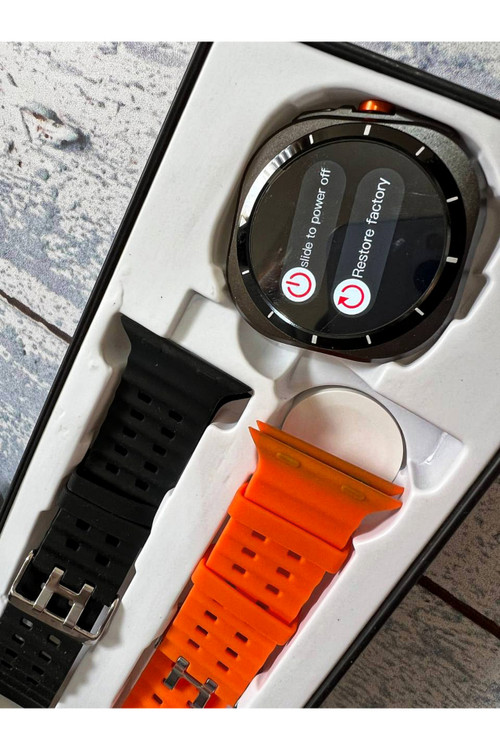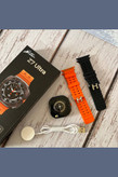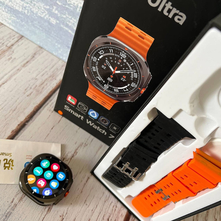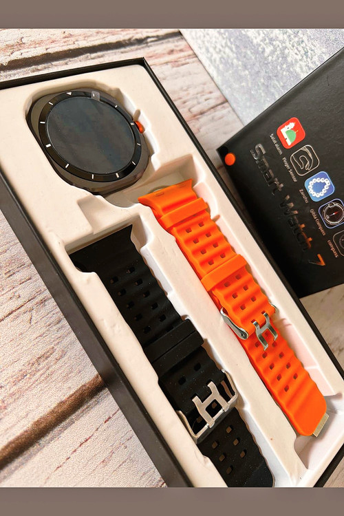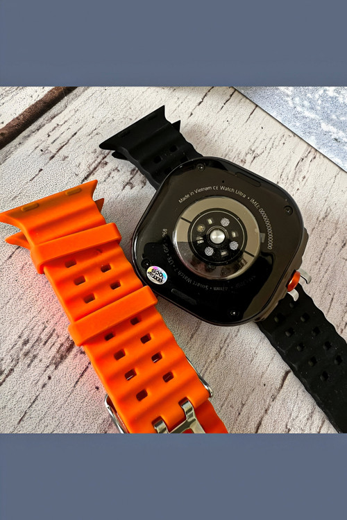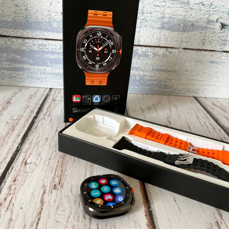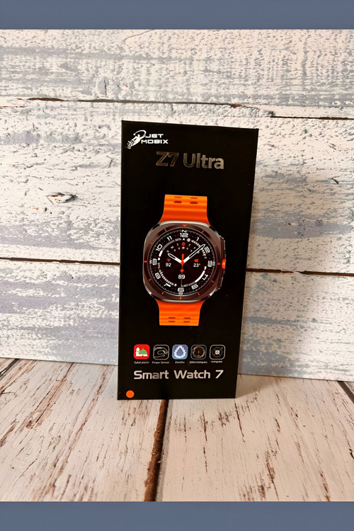 رنگ تیتانیومی و مات بدنه ساعت هوشمند طرح گلکسی واچ اولترا Z7 Ultra ، اولین چیزی است که به چشم کاربر میخورد. همچنین بند اوشن نارنجی با جنس سیلیکونی و رنگ نارنجی دکمه چرخان در سمت راست ساعت جذابیت بصری بسیار بالایی برای کاربران خواهد داشت. شایان ذکر است که رنگ مشکی این ساعت دارای بند سیلیکونی اوشن با رنگ مشکی میباشد. بدنه این ساعت از جنس آلومینیوم است و دارای خاصیت ضد آب با استاندارد IP68 میباشد. یعنی مقاومت خوبی در برابر پاشش آب در حین شستشوی دست و قطرات باران دارد. اما نمیتوان آن را به درون آب فرو برد. امکانات و قابلیت های این اسمارت واچ جذاب قابلیتهای مشابه ساعتهای طرح اپل واچ اولترا دارد که در زیر به بخشی از آنها اشاره شده است. 1- قابلیت مکالمه: میتوانید با این اسمارت واچ به صورت مستقیم با مخاطبان خود مکالمه کنید. به تماسها پاسخ دهید و تماسهای خروجی برقرار کنید. 2- سنسورهای سلامتی و ورزشی: این ساعت دارای سنسورهای سلامتی و ورزشی است. میتواند در حین ورزش میزان کالری مصرفی، میانگین ضربان قلب و همچنین تعداد گامهای برداشته شده را به شما نشان دهد. 3- قطب نما: قطب نما و ژیروسکوپ دو سنسور مهم و کاربردی هستند که در ساعت هوشمند طرح گلکسی واچ اولترا Z7 Ultra قرار دارند. 4- نمایش اعلانات: نمایش اعلانات فارسی و پیامکها یکی از مهمترین کاربردهای این اسمارت واچ است که با نمایشگر بزرگ آن، حس بهتری در حین استفاده به کاربر منتقل خواهد کرد. 5- تنظیم هشدار و یادآوری روزانه، نمایش میزان آب و هوا و اجرای بازیهای سرگرم کننده از دیگر قابلیتهای این ساعت هوشمند هستند که میتوان به آنها اشاره کرد