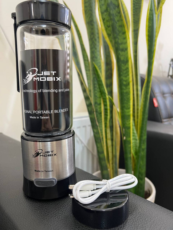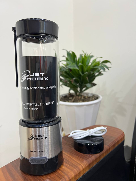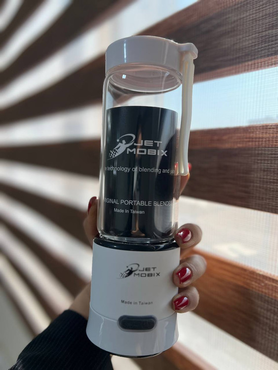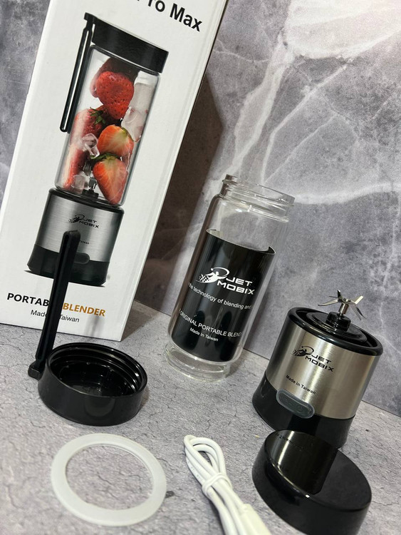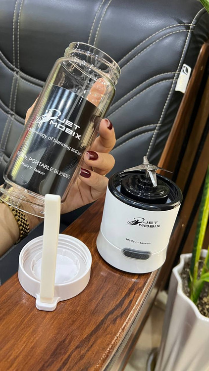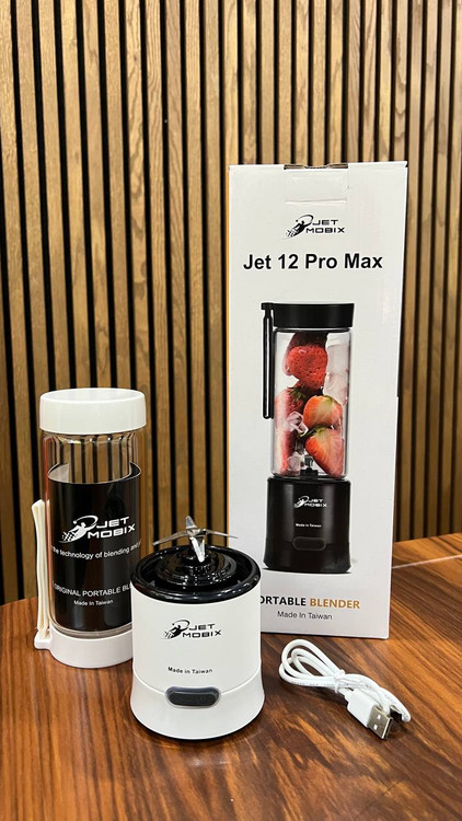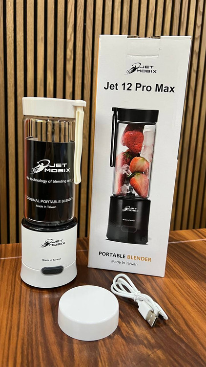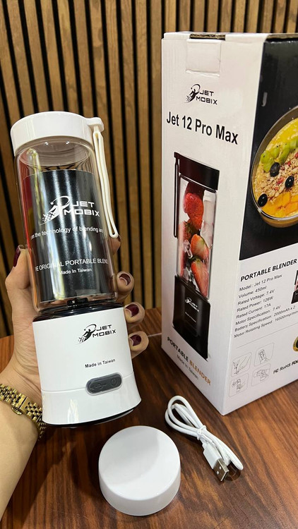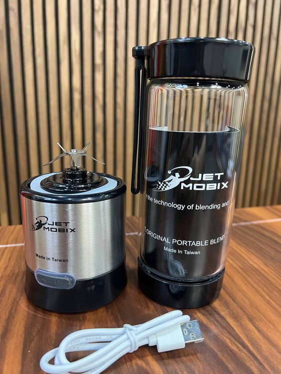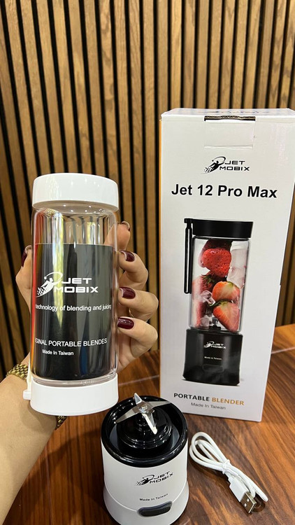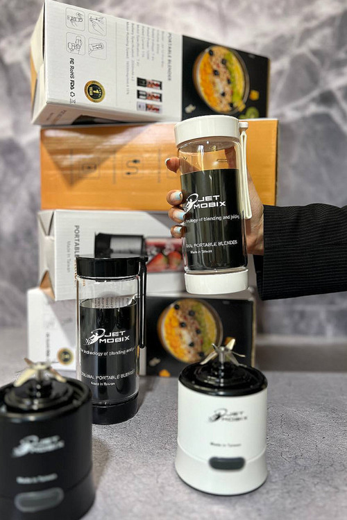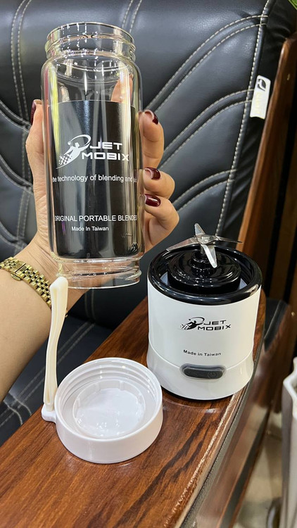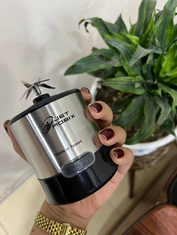 به روز ترین محصول کمپانی جت موبیکس است که با تکنولوژی پیشرفته و جنس بدنه استیل خود ، یک مخلوط کن حرفه ای پر قدرت قابل حمل و ضد آب و با اصالت ساخت کشور تایوان را در اختیار شما قرار میدهد تا بتوانید در هر زمان ، نوشینی دلخواه خود را درست کرد و از آن لذت ببرید . تیغه های به کار رفته در این مخلوط کن با کیفیت ، از جنس استیل 304 با طراحی 6 پره با قابلیت یخ شکن می باشد که به راحتی تمام ، فراتر از انتظار یک مخلوط کن شارژی هر آنچه که داخل این مخصول کن قرار دهید را خرد میکند از قالب یخ و میوه یخ زده گرفته تا دانه های سخت مثل جوز هندی و زنجبیل و سایر خوراکی های سخت پوست ، این مخلوط کن به شما هرگز در خرد کردن ، نه نمیگوید. در ساخت این محصول از موتور دریل شارژی 126 وات استفاده شده که سرعت چرخش آن تا 16500دور بر دقیقه بالا می رود و میتواند یک نوشیدنی یک دست و با بافتی نرم را در اختیار شما قرار دهد. این مخلوط کن حرفه ای توانایی ذخیره سازی 4000 میلی آمپر انرژی را دارد که با هر بار شارژ قابلیت استفاده بیش از 25 مرتبطه را به شما میدهد فقط دقت کنید که برای افزایش عمر دستگاه به هیچ عنوان نباید با شارژر فست شارژ محصول را شارژ کنید و میتوانید با آداپتور های معمولی موبایل (غیر فست شارژ) به راحتی محصول را شارژ کرده و سال ها از آن استفاده کنید . این مخلوط کن شارژی 2 حالت روشن کردن دارد (1-سه ثانیه دکمه روشن شدن محصول را نگه دارید که این مود اصلی این مخلوط کن است و از تمام قدرت خود استفاده میکند 2-دوبار فشردن دکمه اصلی که این مود فقط برای شست و شو استفاده میشود مخلوط کن فقط با 20 درصد توان خود کار میکند) این محصول برای شیک کردن انواع مکمل ورزشی و ساخت انواع اسموتی و نوشیدنی و شیک مناسب میباشد و همچنین در موقعیت های سفر و کمپینگ و حتی آشپز خانه میتوانید برای آماده سازی غذا از آن استفاده نمایید (مثل خرد کردن گوجه یا خرد کردن پیاز برای پختن کباب) همچنین این مخلوط کن یک درب دارد که میتوانید با استفاده از آن محفظه را به یک قمقمه تبدیل کنید.