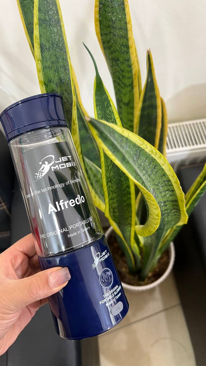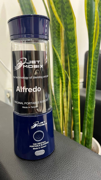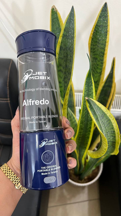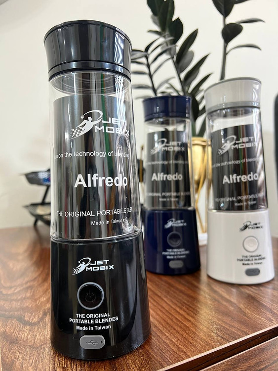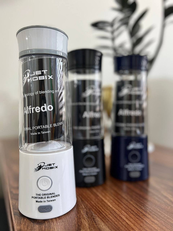 شیکر و مخلوط کن شارژی جت موبیکس مدل آلفردو یک محصول ضد آب و با اصالت ساخت کشور تایوان است. ظرفیت محفظه ی آن 400 میلی لیتر است. جنس بدنه محصول پلاستیک و تیغه 6 جهته آن فولاد ضد زنگ می باشد . این محصول دارای موتور پرقدرت 126 وات می باشد . ( موتور براش دریل شارژی برای این محصول استفاده شده). این محصول را میتوانید در آشپزی ، ورزش و در سفر و تفریحات استفاده کنید و لذت ببرید . این مخلوط کن شارژی 2 حالت روشن کردن دارد ( 1- سه ثانیه دکمه روشن شدن محصول را نگه دارید که این مود اصلی این مخلوط کن است -2 دوبار فشردن دکمه اصلی که این مود فقط برای شست و شو استفاده میشود مخلوط کن فقط با 20 درصد توان خود کار میکند این محصول از دو باتری لیتیوم پلیمر قدرتمند استفاده میکند که در مجموع 4000 میلی آمپر قابلیت ذخیره سازی انرژی دارد و با هر بار شارژ شما می توانید حدود 20 بار از این محصول استفاده کنید دور موتور این محصول 18000 دور بر دقیقه است که تیغه استیل ضد زنگ استیل بهداشتی این مخلوط کن شارژی را با سرعت بالایی به حرکت در می آورد. فقط 30 ثانیه زمان احتیاج دارد تا تمام محتوای داخل مخزن شیشه ای این شیکر را به خوبی مخلوط کرده و یک مخلوط یک دست و نرم را برای شما به ارمغان بیاورد . توجه کنید برای افزایش عمر دستگاه به هیچ عنوان نباید با شارژر فست شارژ محصول را شارژ کنید و میتوانید با آداپتورهای معمولی موبایل ( غیر فست شارژ به راحتی محصول را شارژ کرده و سال ها از آن استفاده کنید . دقت کنید این محصول ضد آب است و به راحتی میتوانید آن را بشورید اما دقت کنید که سیلیکون قسمت شارژ دستگاه باید پوشیده باشد .