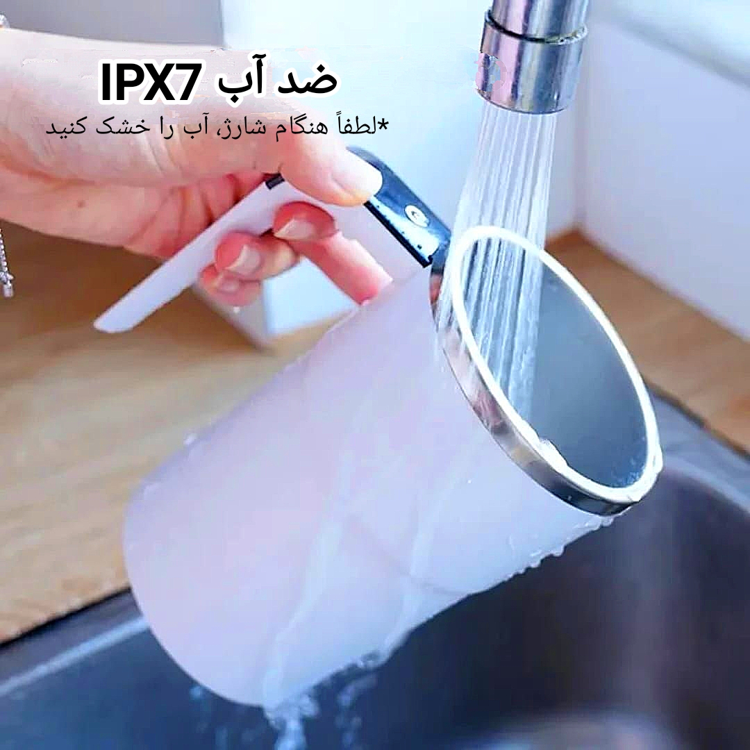 - باتری لیتیومی 350 میلیآمپری: شارژ از طریق پورت USB — تا 30–40 بار استفاده پیاپی با یک شارژ کامل.