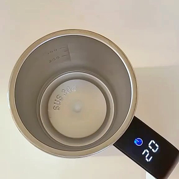 - نمایشگر دیجیتال LED دما: نمایش لحظهای دمای محتوای لیوان (در واحد سانتیگراد) — برای جلوگیری از سوختن لب یا نوشیدن محلول سرد.