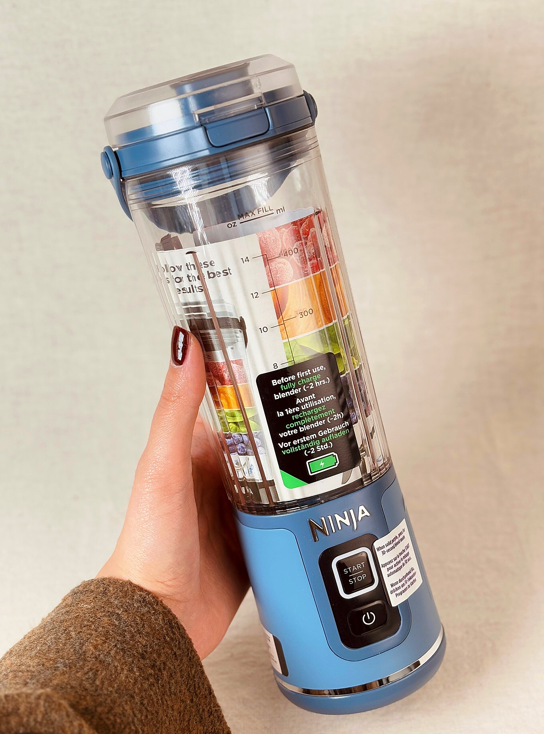 قدرت بلندینگ نینجا، در دستان شما: با بهترین تکنولوژی قابل حمل نینجا، به راحتی سختترین مواد اولیه مانند یخ و میوههای یخزده را پودر کرده و نوشیدنیهایی با بافت کاملاً نرم و یکدست بسازید.