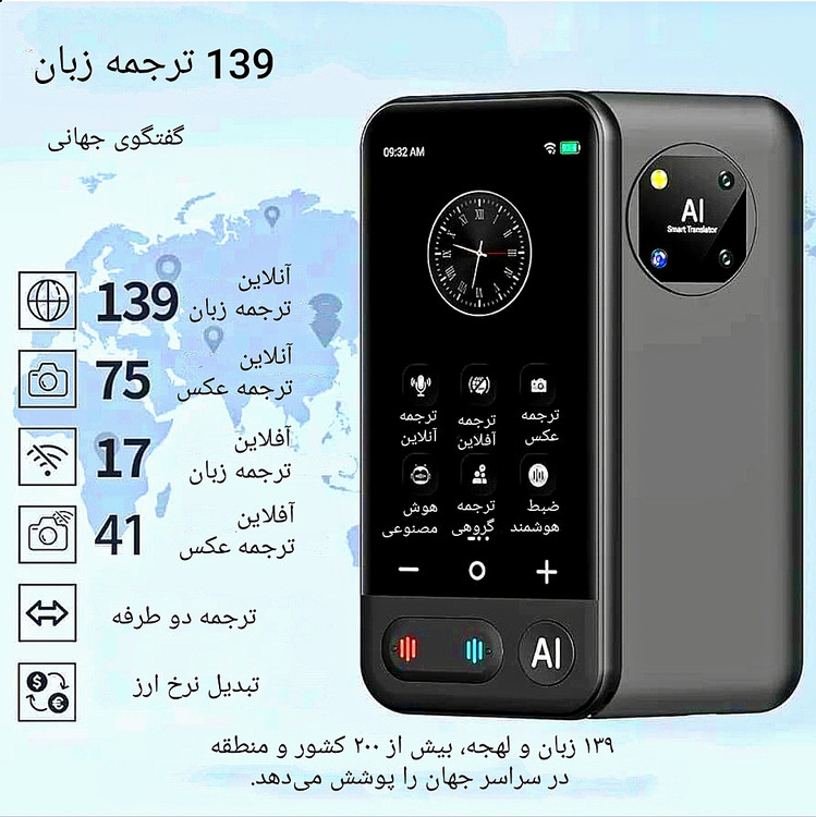 این دستگاه هوشمند با پشتیبانی از ترجمه آنلاین ۱۳۹ زبان و ترجمه آفلاین ۲۰ زبان (از جمله فارسی)، همراهی مطمئن برای سفرهای خارجی، جلسات کاری و یادگیری زبانهای جدید است.