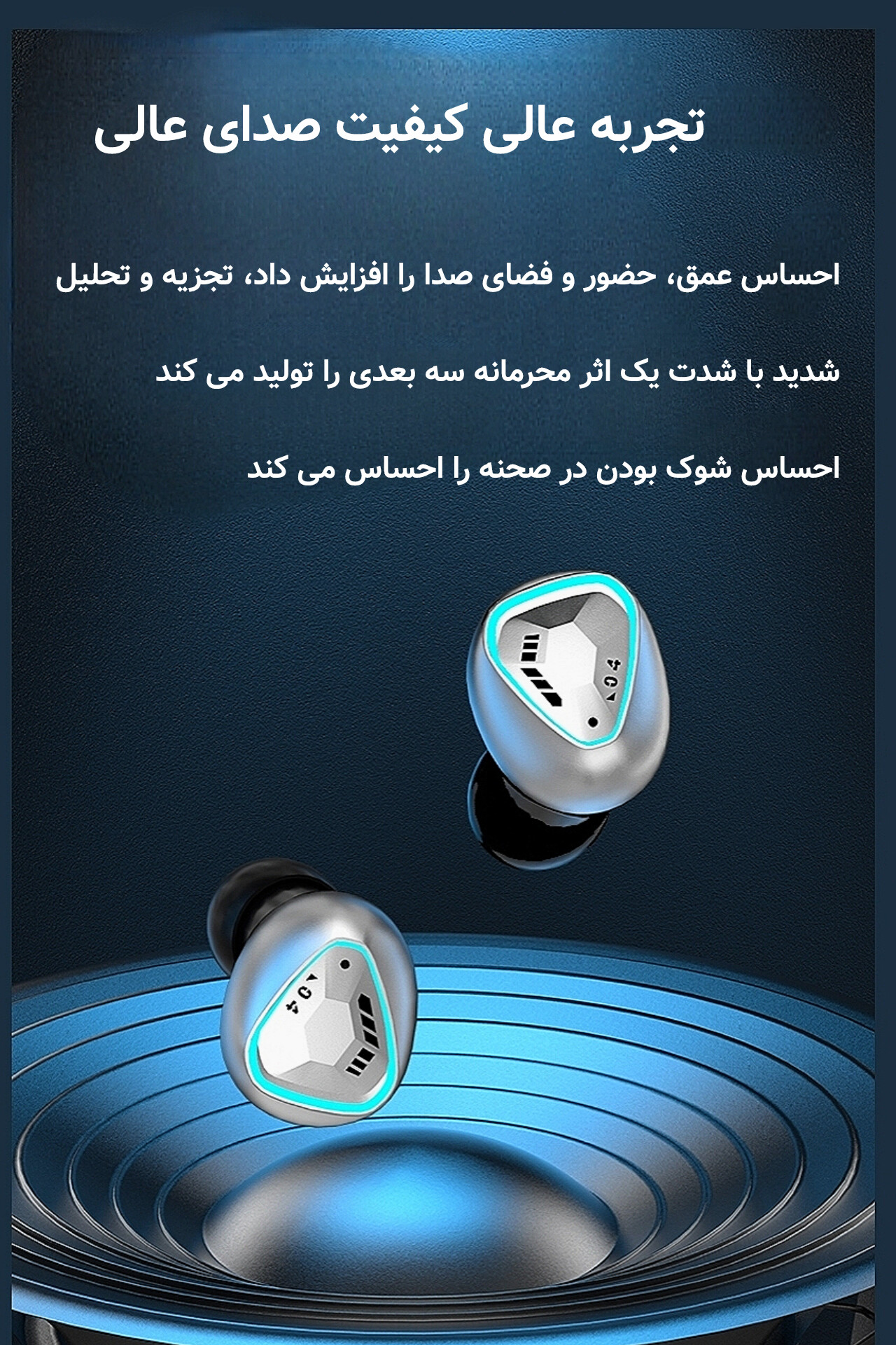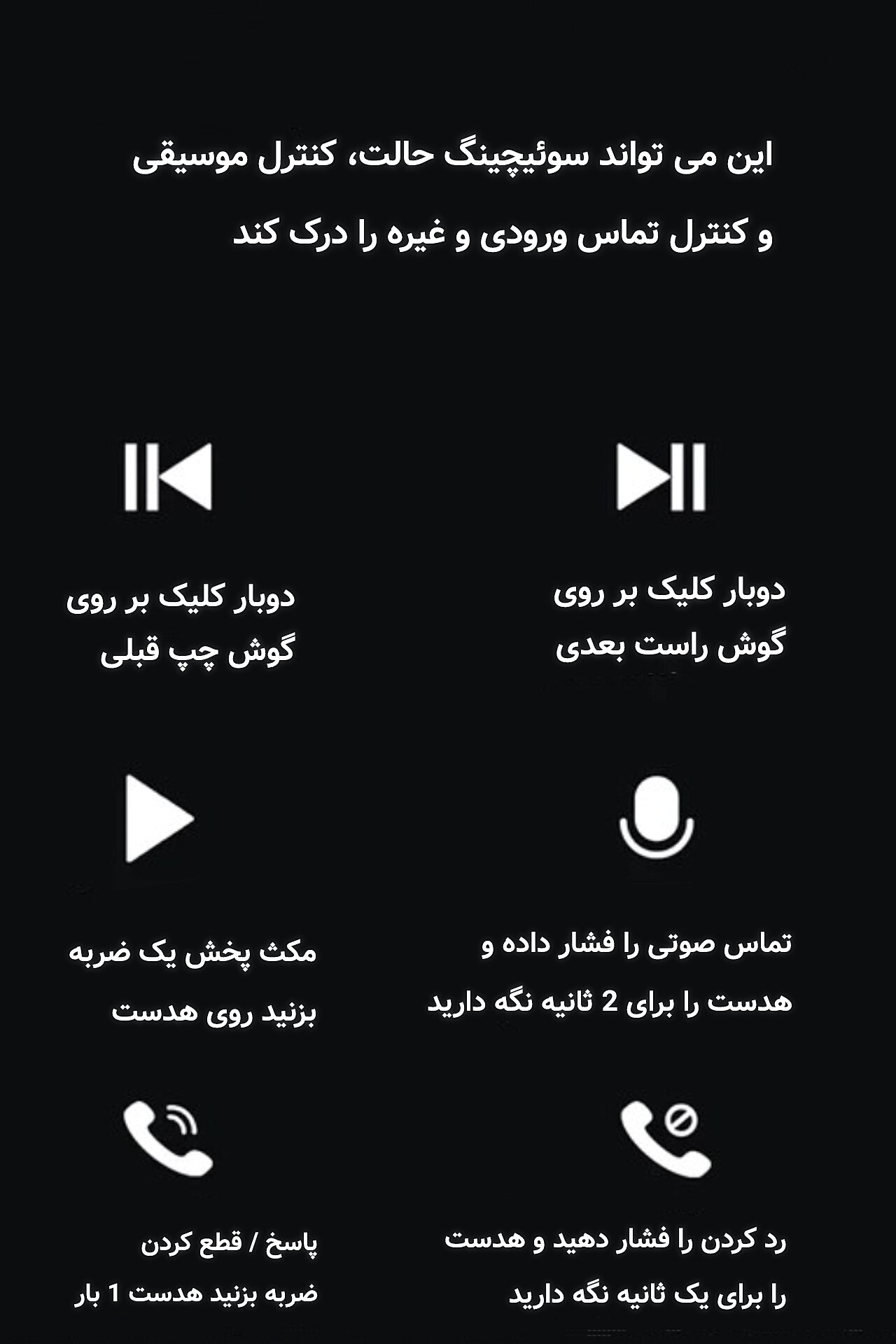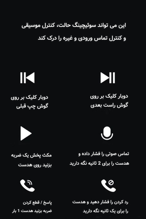 ایرپادها با هر بار شارژ ۸ ساعت به طور مداوم و قابلیت کنترلهای لمسی در پخش یا قطع موسیقی